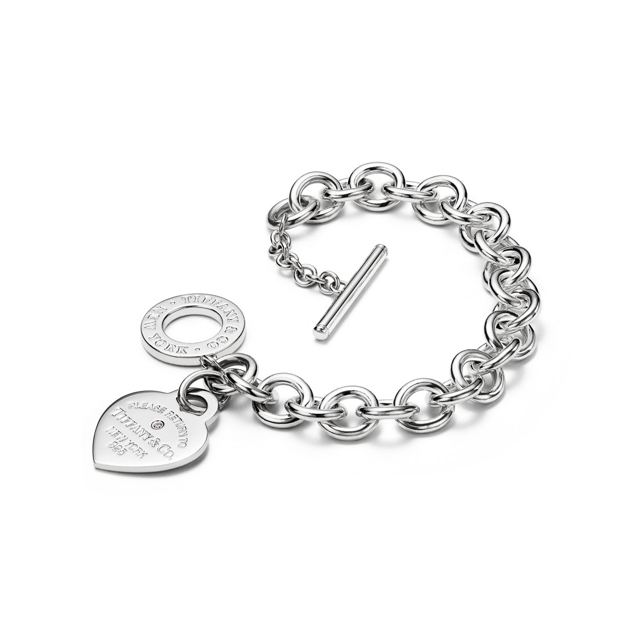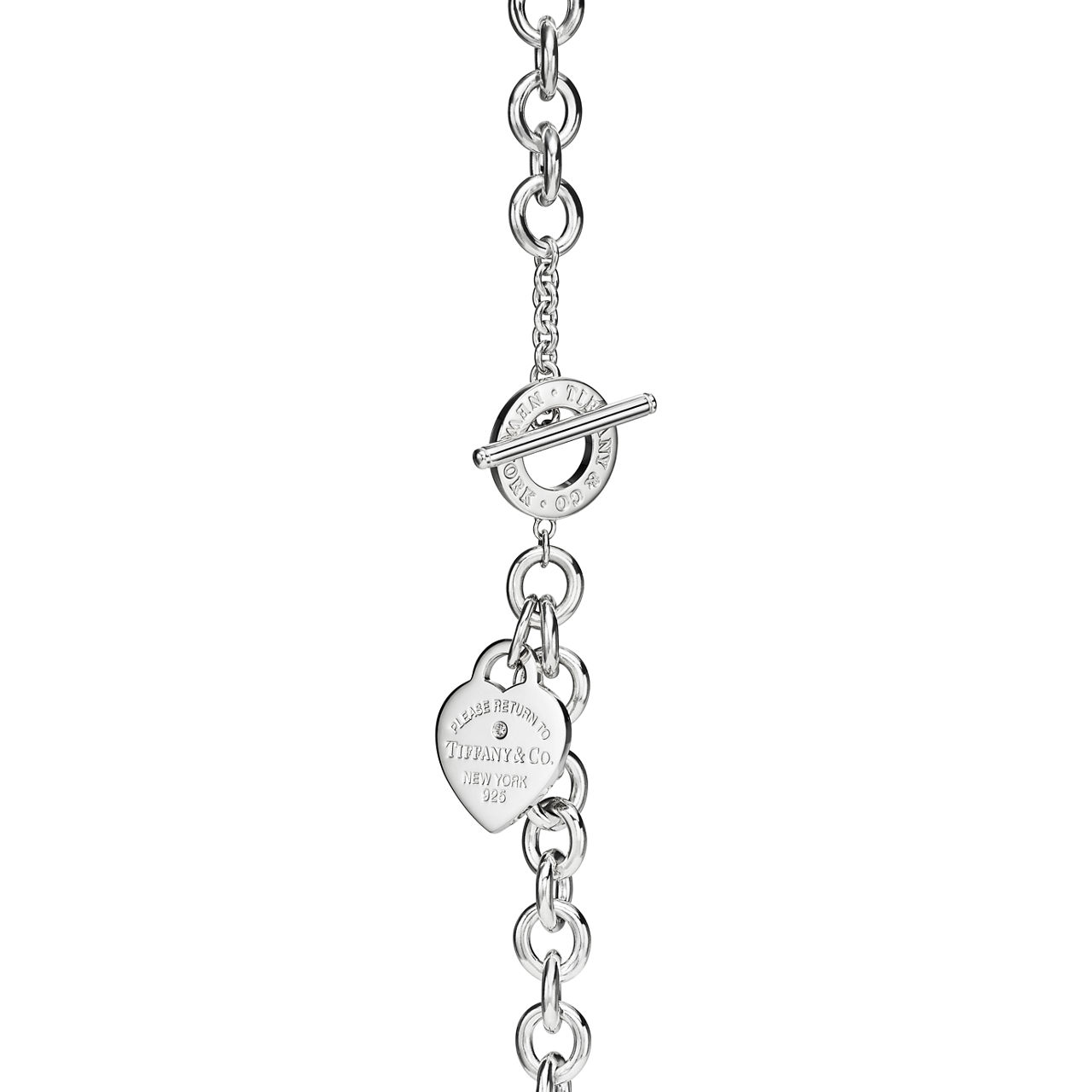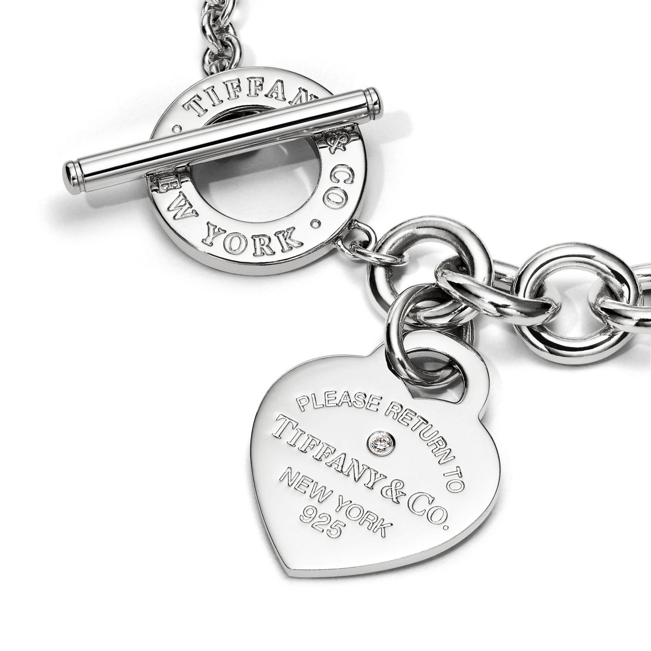 Inspired by a key ring we debuted in 1969, the return to tiffany® collection is famous for its signature motif. This sterling silver link bracelet features the iconic heart tag set with a round brilliant diamond and an oversized toggle closure. It’s a standout when worn on its own and also combines beautifully with your favorite stack of bracelets.