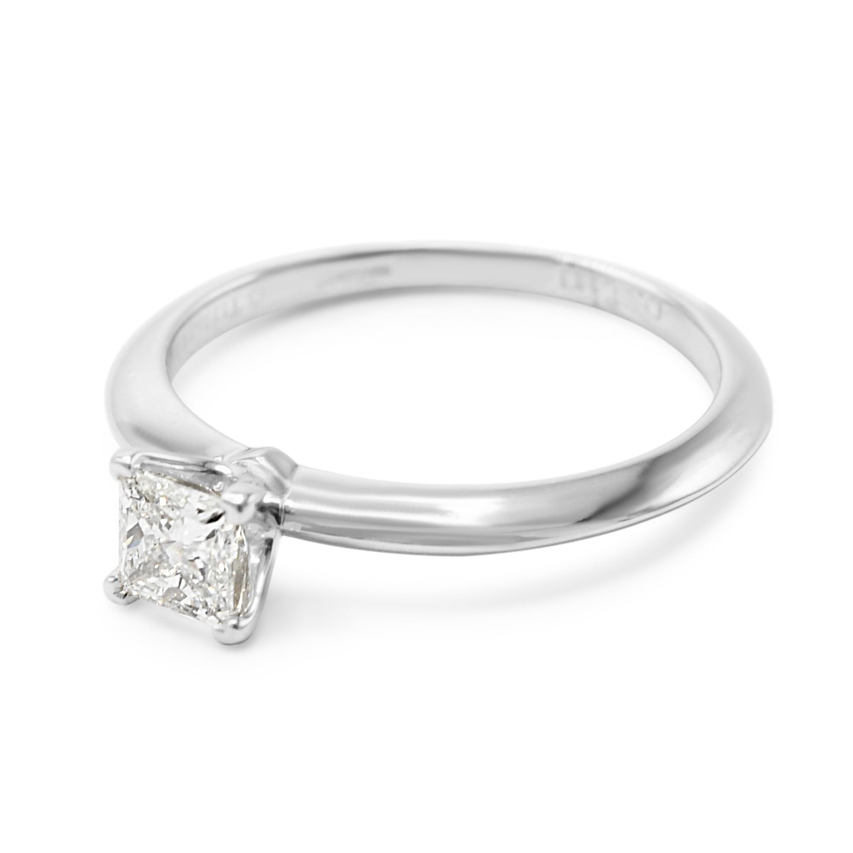 Take a moment to behold this pre-owned ring, featuring a dazzling 0.45ct Square Brilliant Diamond, accompanied by copies of the Certificate, copy of the Original Purchase Receipt, and a copy of the Tiffany Valuation Document. This means you can rest assured that you are investing in a genuine, high-quality piece that will be treasured for a lifetime.
