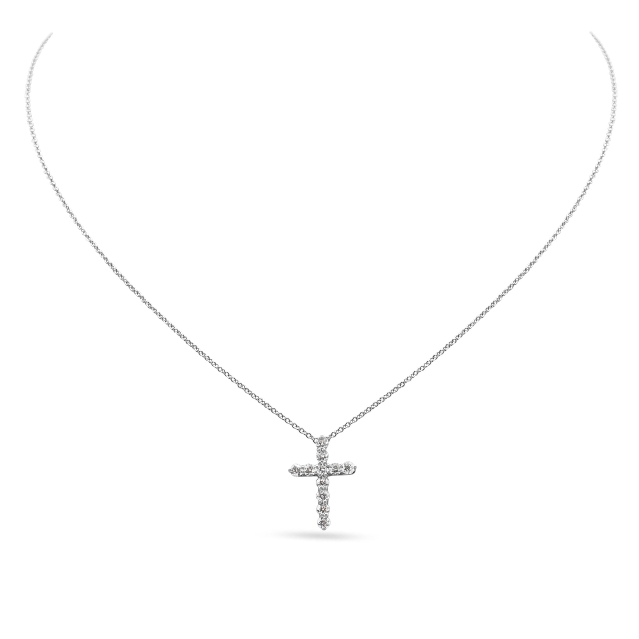 Attention all ladies! Are you looking for the perfect accessory to elevate your style and showcase your faith? Look no further than the stunning second hand Tiffany Diamond Cross Pendant in small size, hanging delicately on a 16" Platinum necklace. This exquisite piece from the renowned Tiffany & Co brand is a symbol of elegance, sophistication, and devotion.