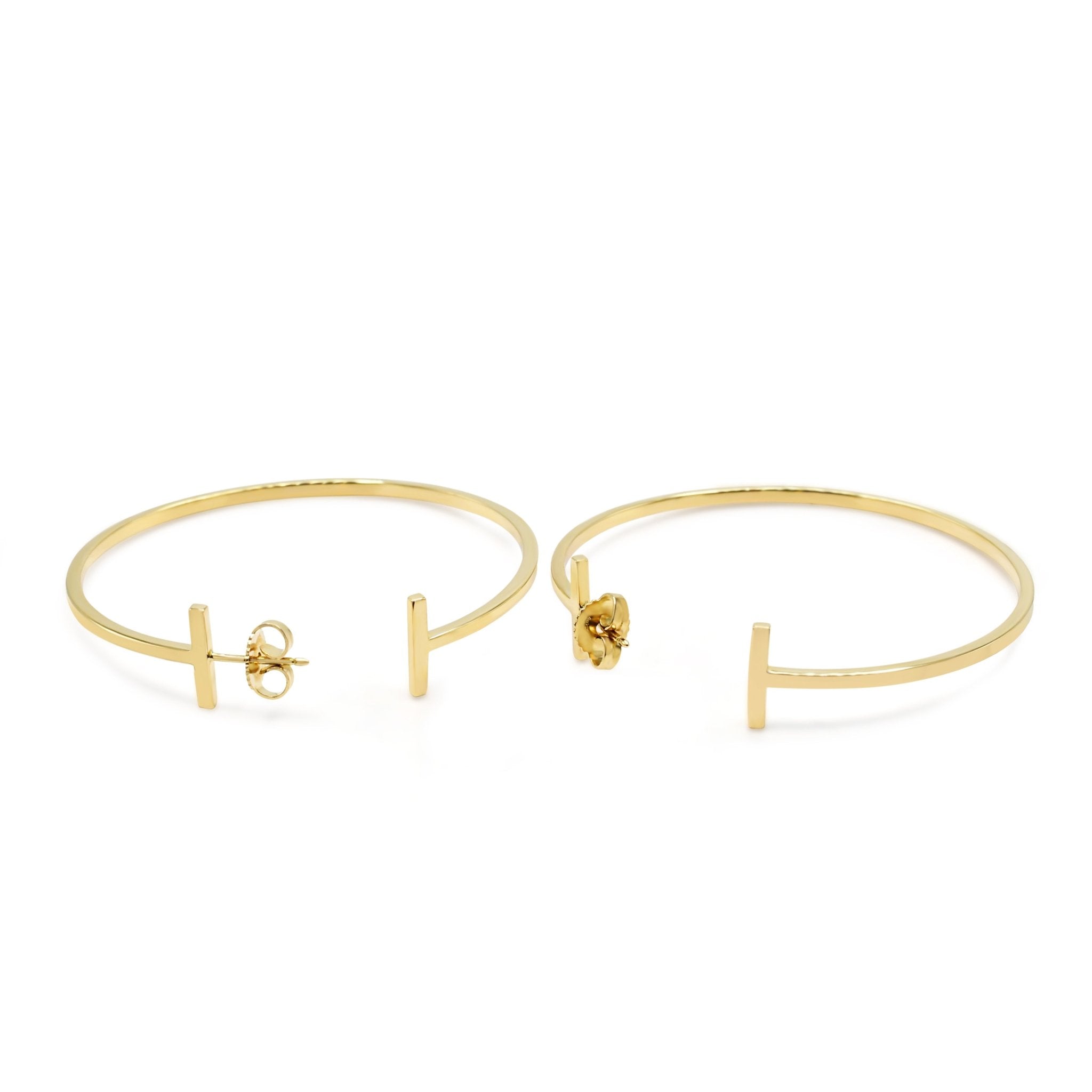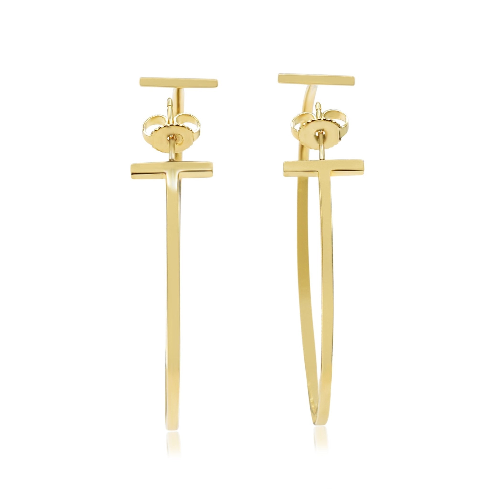 Introducing the ultimate statement piece for all fashion-forward women - these second hand Tiffany T Wire Hoop Earrings XL in 18ct Yellow Gold. From the renowned brand Tiffany & Co's iconic T collection, these earrings are a true testament to the brand's timeless elegance and exquisite craftsmanship.