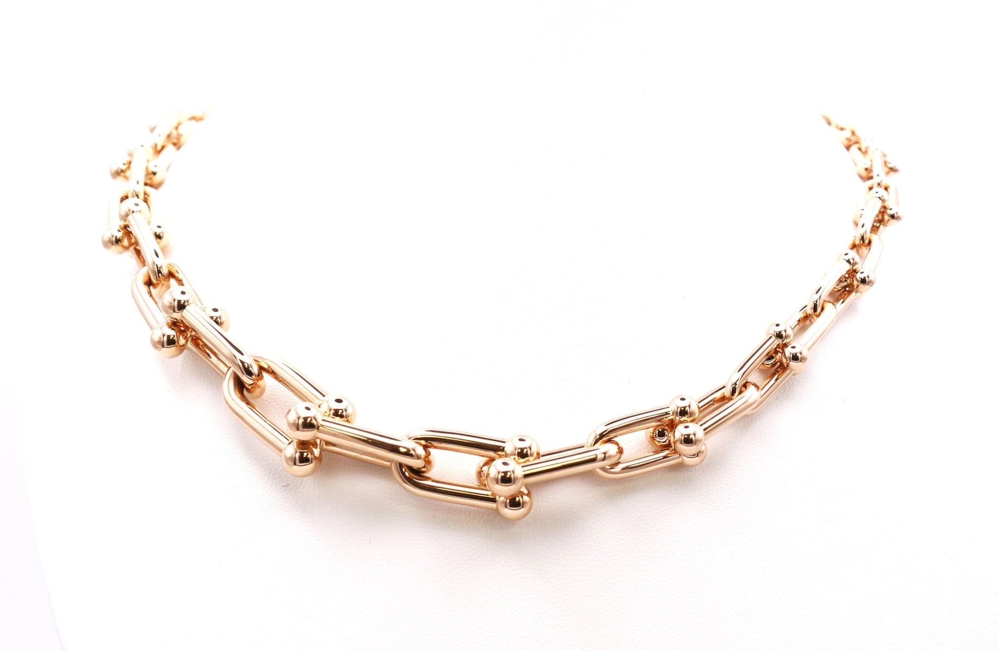 So, if you're looking to make a statement and elevate your style to unparalleled heights, look no further than this used Tiffany & Co Graduated Hardware Link 18" Necklace. With its exquisite design, impeccable craftsmanship, and the undeniable assurance that comes with wearing a Tiffany & Co piece, this necklace is a must-have for any discerning woman. Embrace your inner strength and exude timeless beauty with this remarkable piece of jewellery �� a true symbol of empowerment and grace.