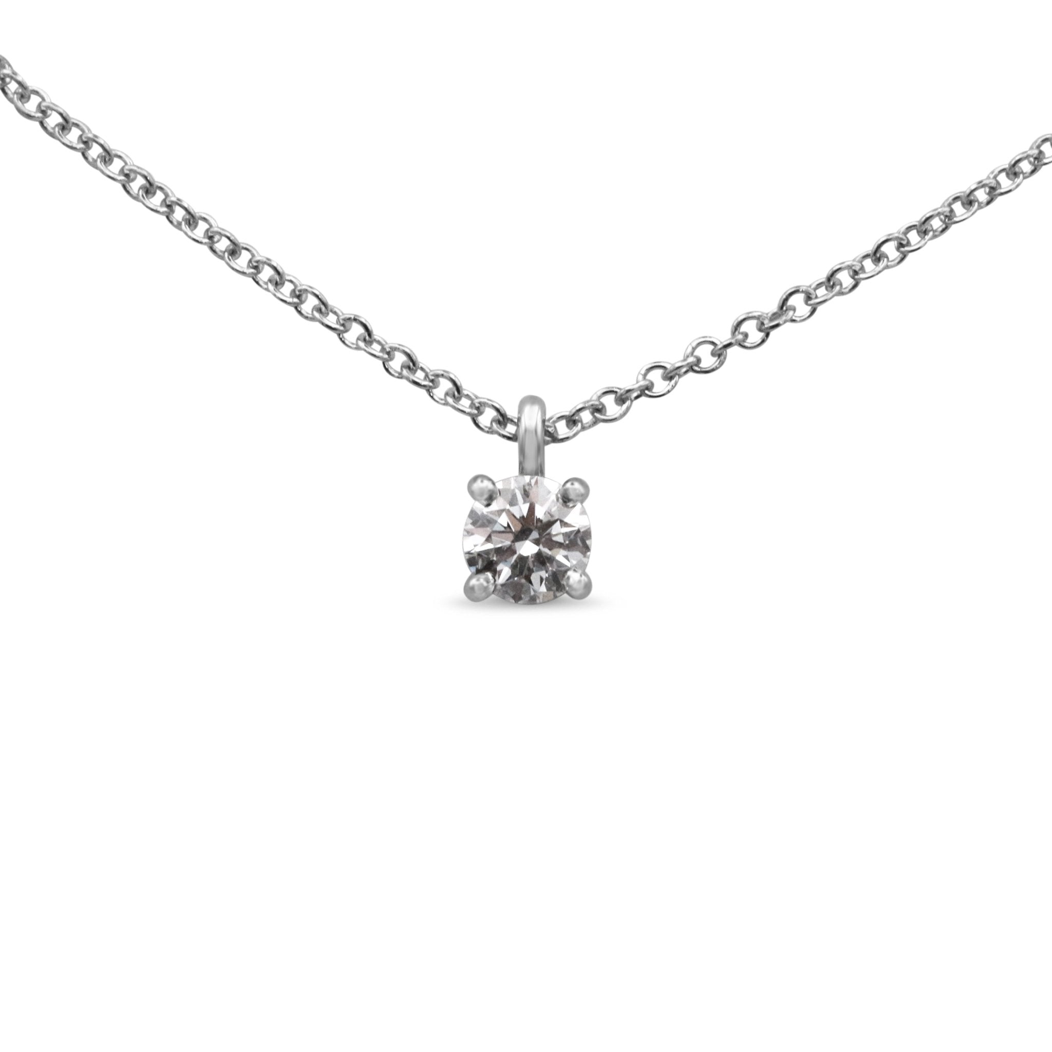 Made with the highest quality materials, this necklace features a stunning 0.17ct Diamond, carefully selected for its brilliance and beauty. The centre-piece of this necklace is a solitaire Diamond, delicately set in a Platinum pendant that will make you stand out in any crowd.