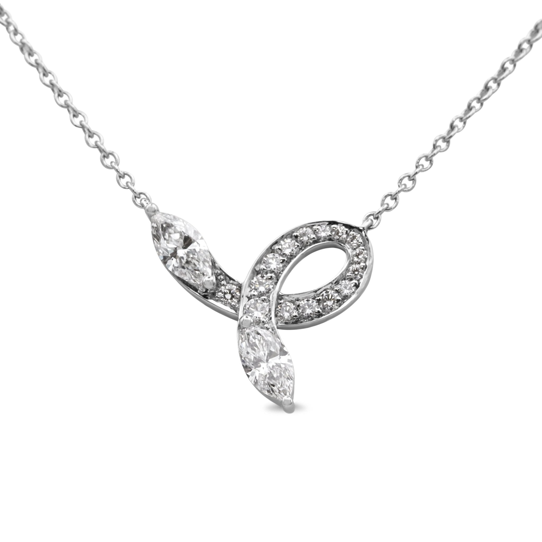 Indulge in the timeless elegance of this second hand Tiffany Victoria Bow Pendant Necklace in Platinum. This exquisite piece from the renowned Tiffany & Co. brand is a true treasure for any woman who appreciates luxury and sophistication.