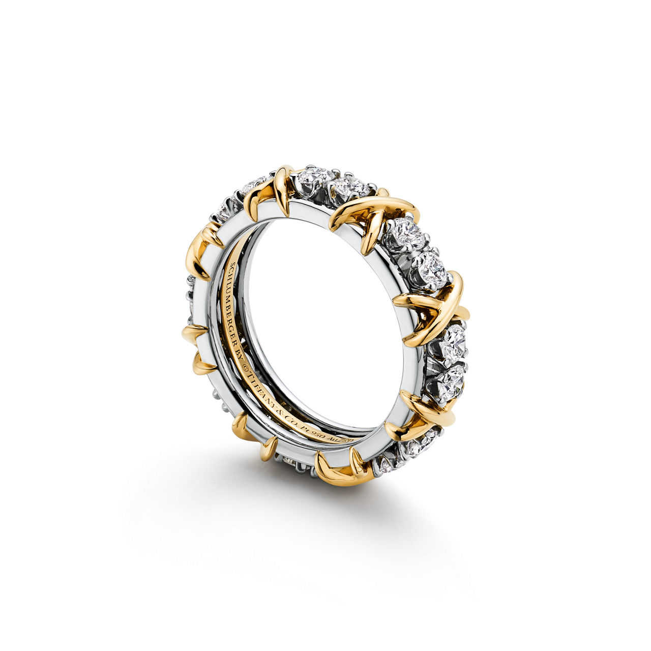 Sixteen stone by tiffany is an expression of love’s nurturing forces. Conceived by legendary designer jean schlumberger in 1959, the collection’s cross-stitch motif was inspired by his family’s roots in textiles. Round brilliant diamonds alternate with golden xs, creating this dazzling design.