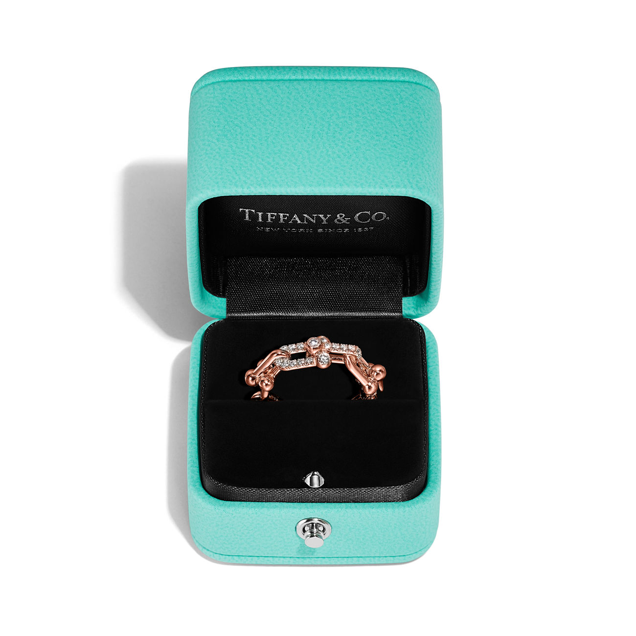 Tiffany HardWear Small Link Ring in Rose Gold with Diamonds