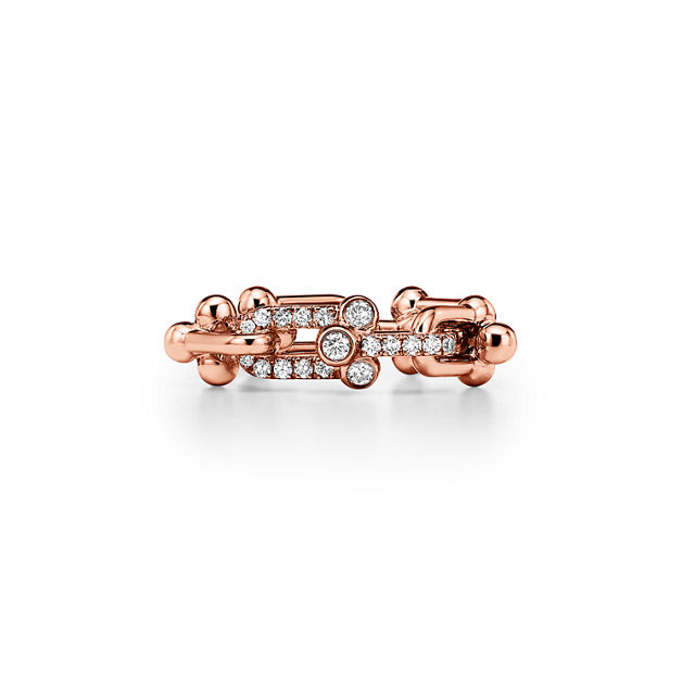 • Tiffany HardWear Small Link Ring in Rose Gold with Diamonds