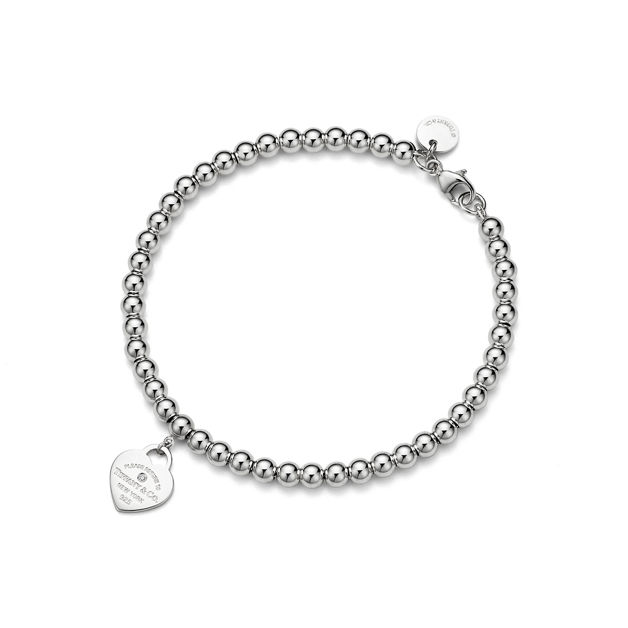 Inspired by a key ring we debuted in 1969, the return to tiffany collection is famous for its signature motif. This sterling silver bead bracelet features a round brilliant diamond on the iconic heart tag. Make this standout silhouette part of your everyday bracelet stack.