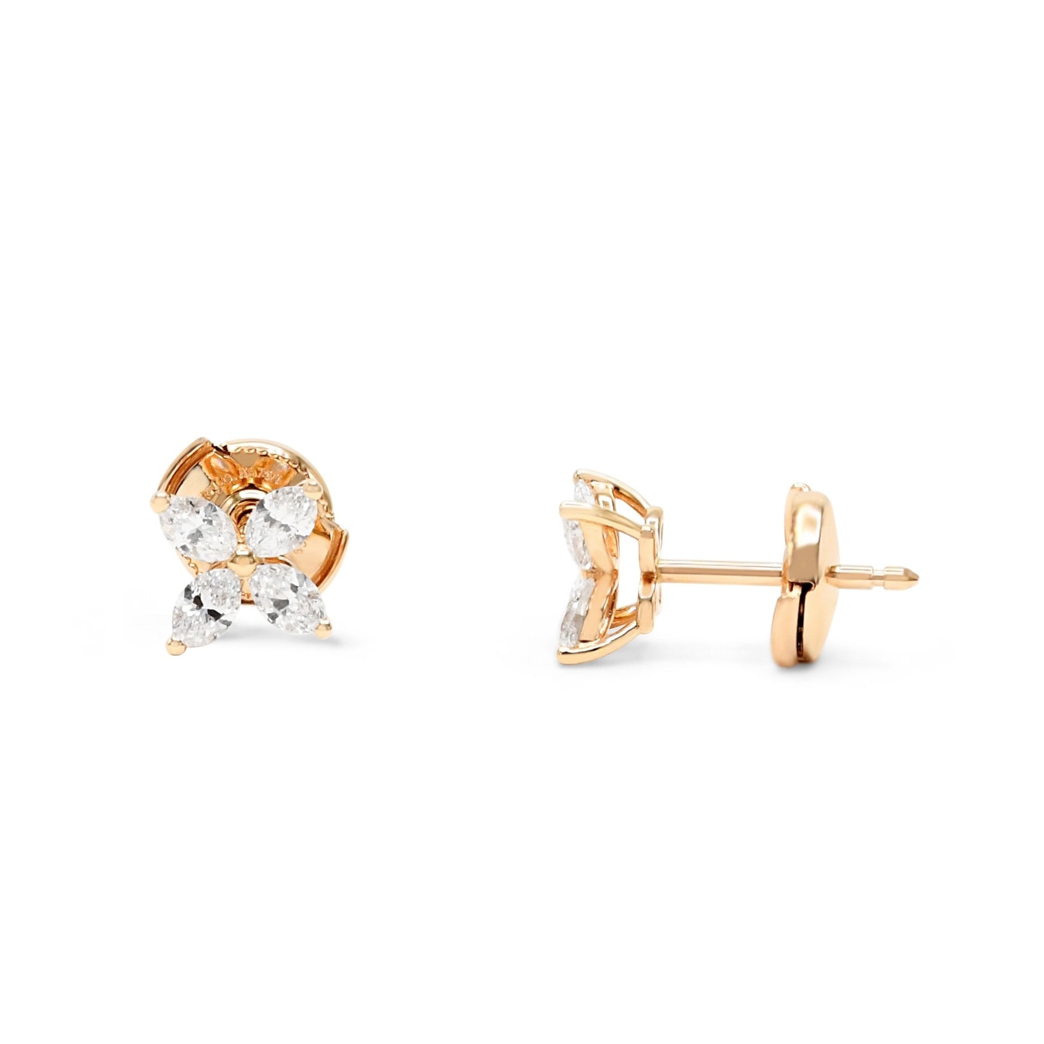 Crafted in rose metal, Earrings Marked T&Co Au750, these pre-owned earrings are a symbol of enduring love and strength. The classic Marquise Cut Diamonds, weighing a total of 0.64ct, are delicately set in a beautiful cluster design, creating a dazzling display of sparkle and shine.