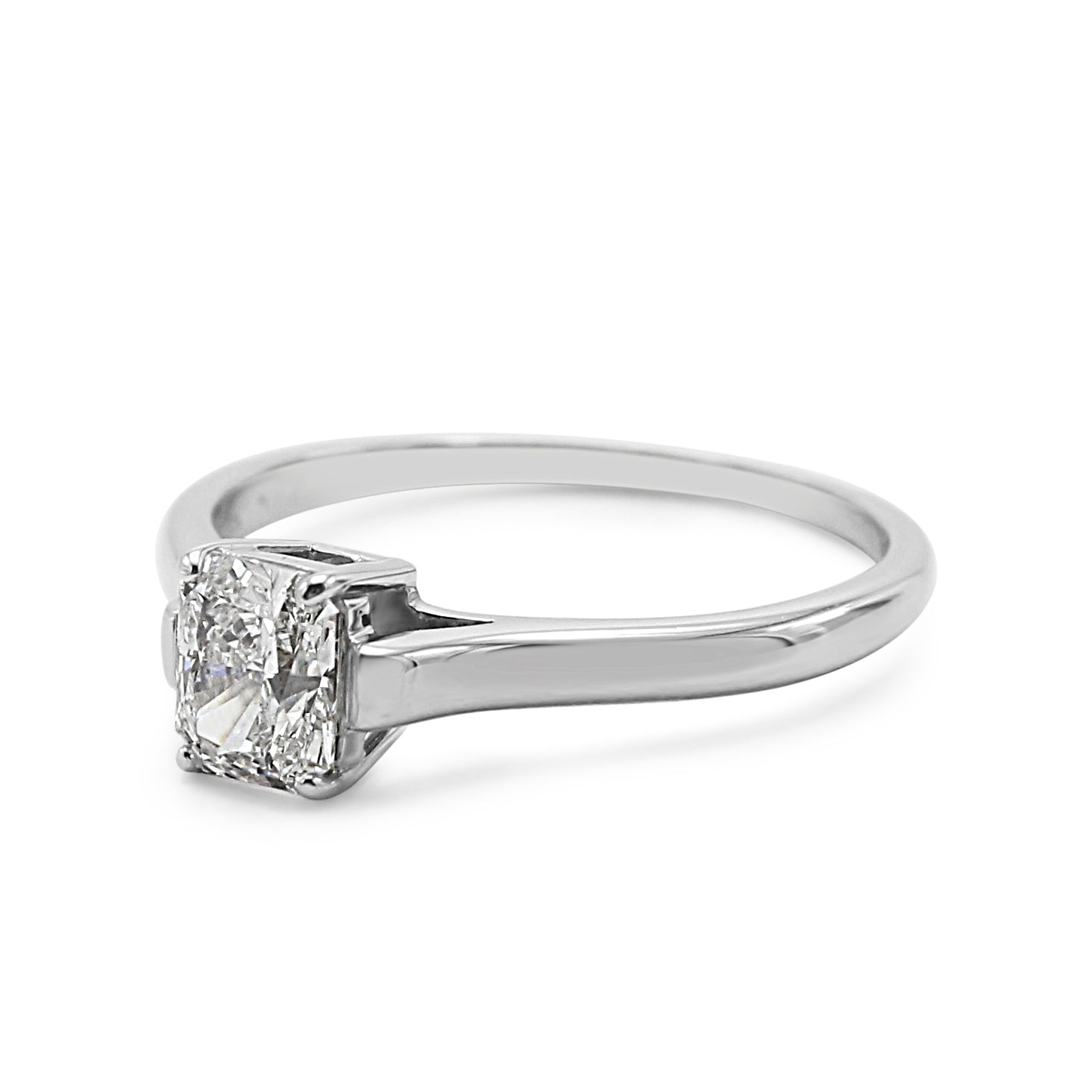 Every woman's must-have, the Tiffany Modified Brilliant Cut Diamond Ring is an exquisite choice for glittering day and night occasions. Crafted by Tiffany & Co, with a diamond certificate of authenticity, this timeless piece of luxury features a 0.77ct rectangular modified brilliant cut diamond of highest clarity (VVS1), the diamond reflects maximum sparkle and elegance that radiates for nights to come.
