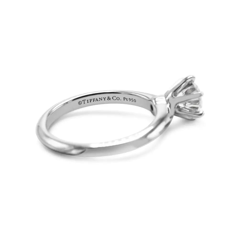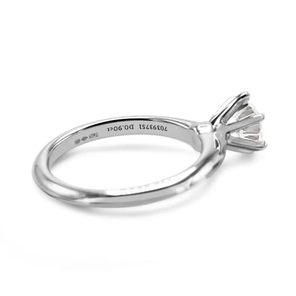 Introducing the Platinum Tiffany Solitaire Brilliant Cut Diamond Ring �� a timeless classic that is sure to take her breath away. Crafted using beautiful, gleaming platinum material and showcasing 0.90ct of dazzling brilliance, this luxurious ring is as elegant as they come.