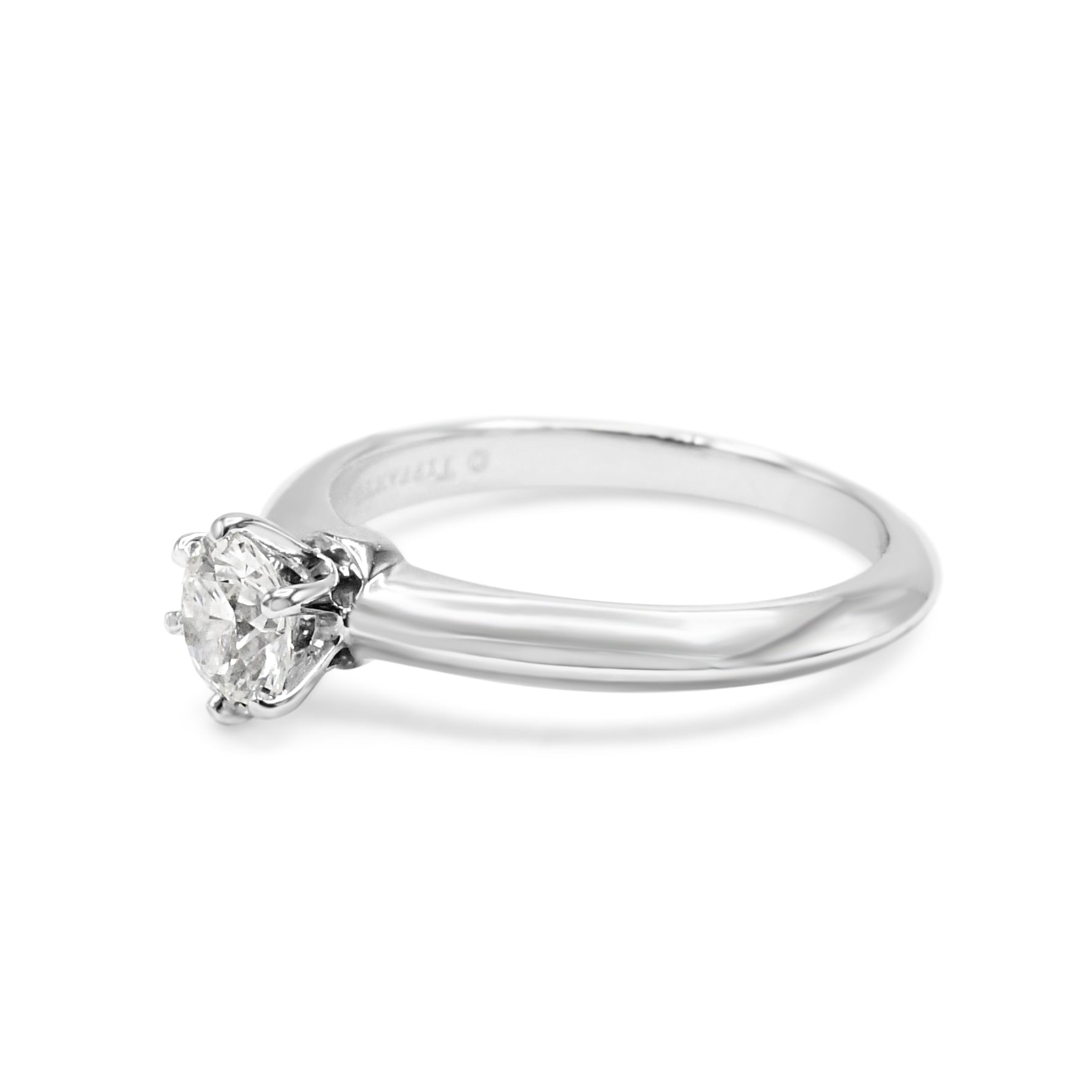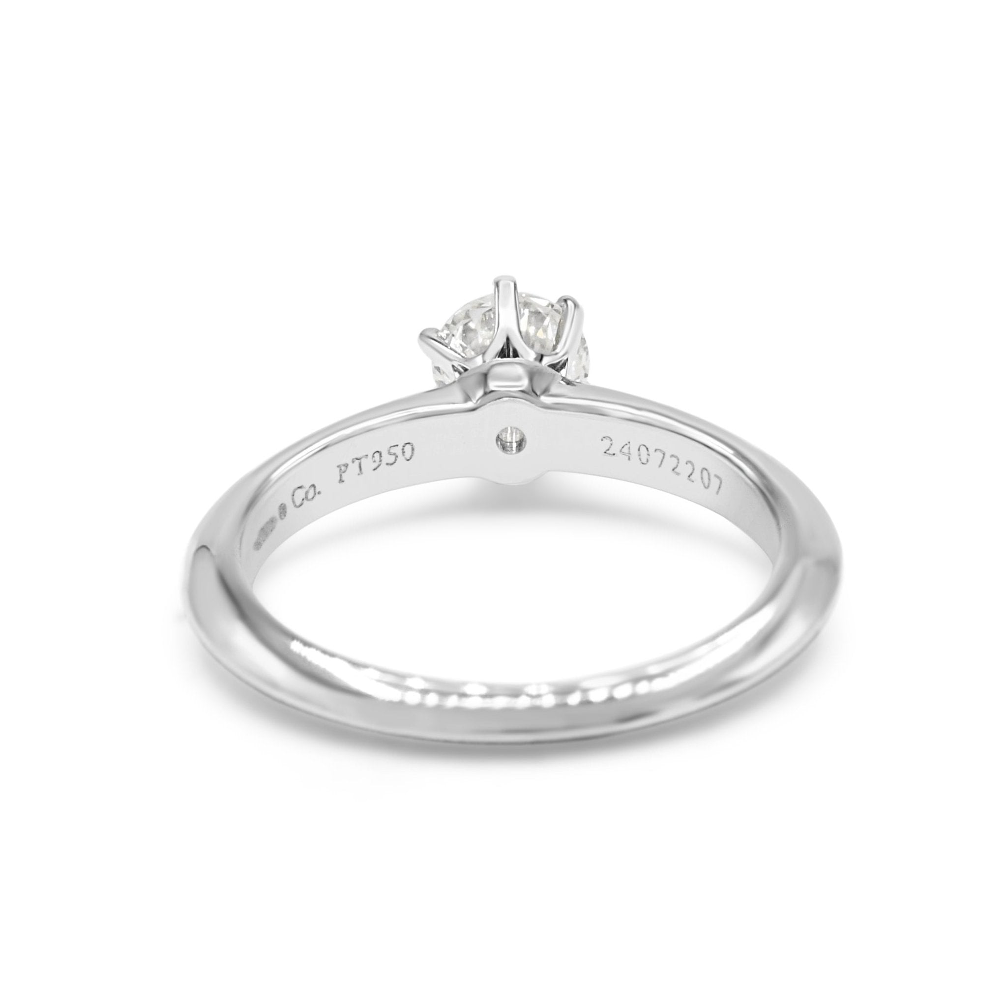 Introducing the ultimate symbol of true love and everlasting commitment - this pre-owned Tiffany & Co. Solitaire Diamond Ring in Platinum. This exquisitely crafted ring from the renowned brand Tiffany & Co is the perfect choice for the modern woman who wants nothing but the best for her special day.