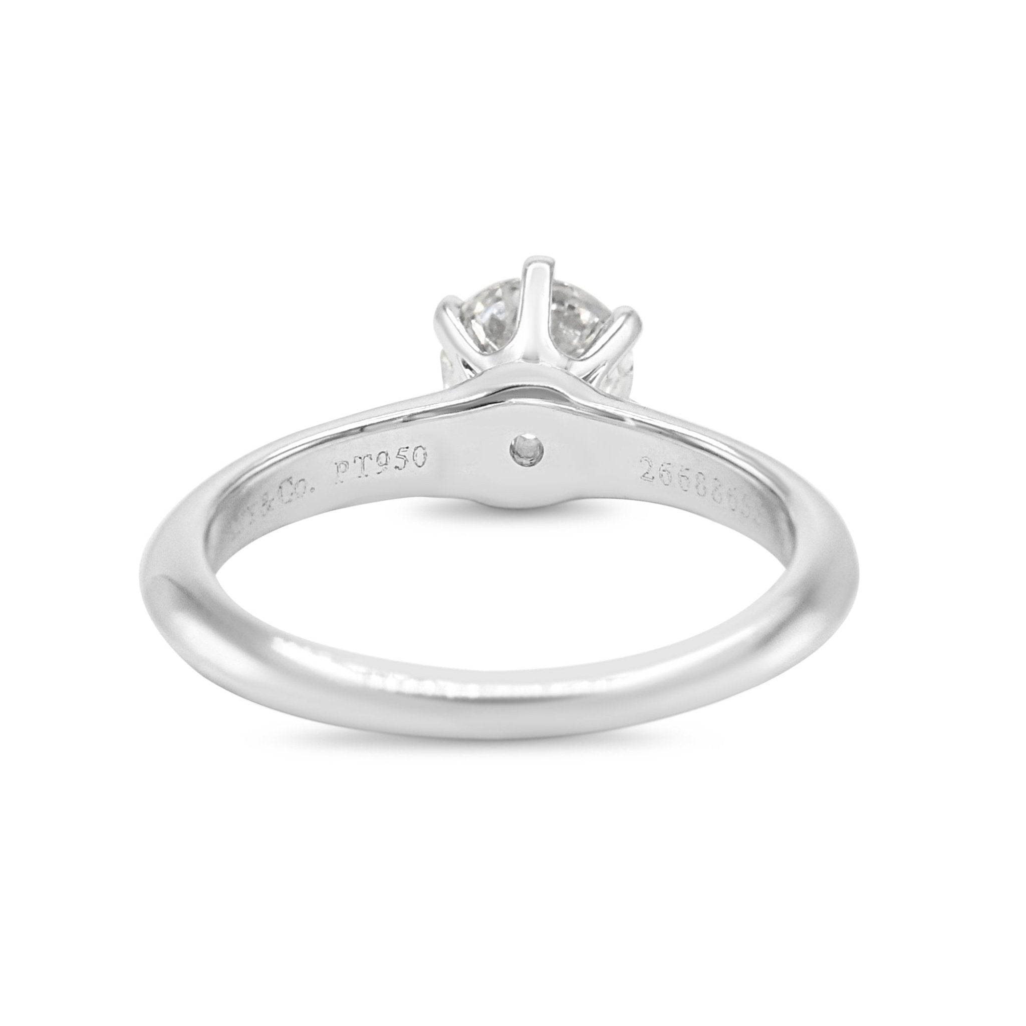 Ladies, get ready to turn heads and steal hearts with this stunning second hand Tiffany & Co. Solitaire Diamond Ring in lustrous Platinum. This ring is more than just a piece of jewellery, it's a symbol of love, elegance, and luxury. Crafted by the renowned brand Tiffany & Co, known for their exquisite designs and unparalleled quality, this ring will take your breath away with its simplicity and beauty.
