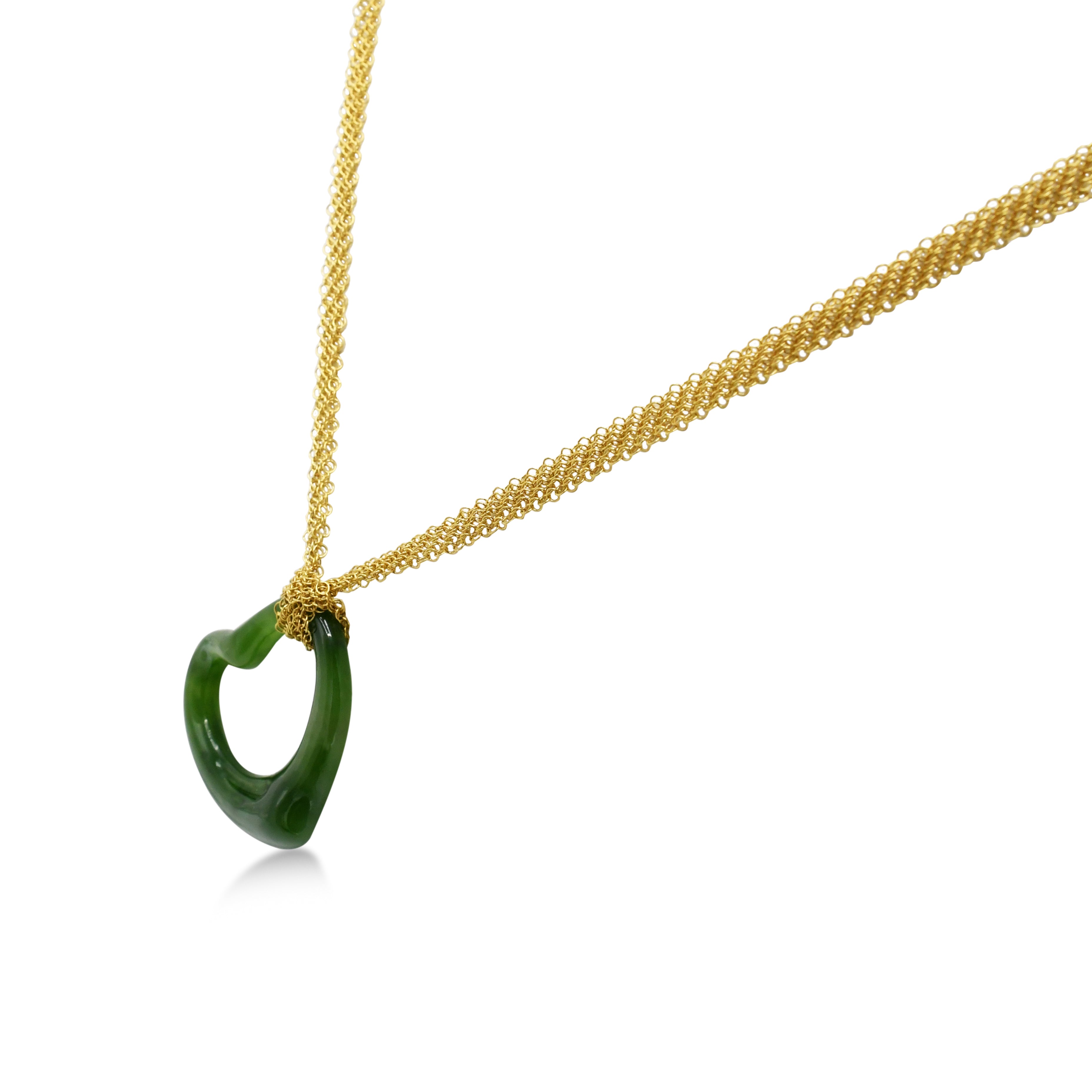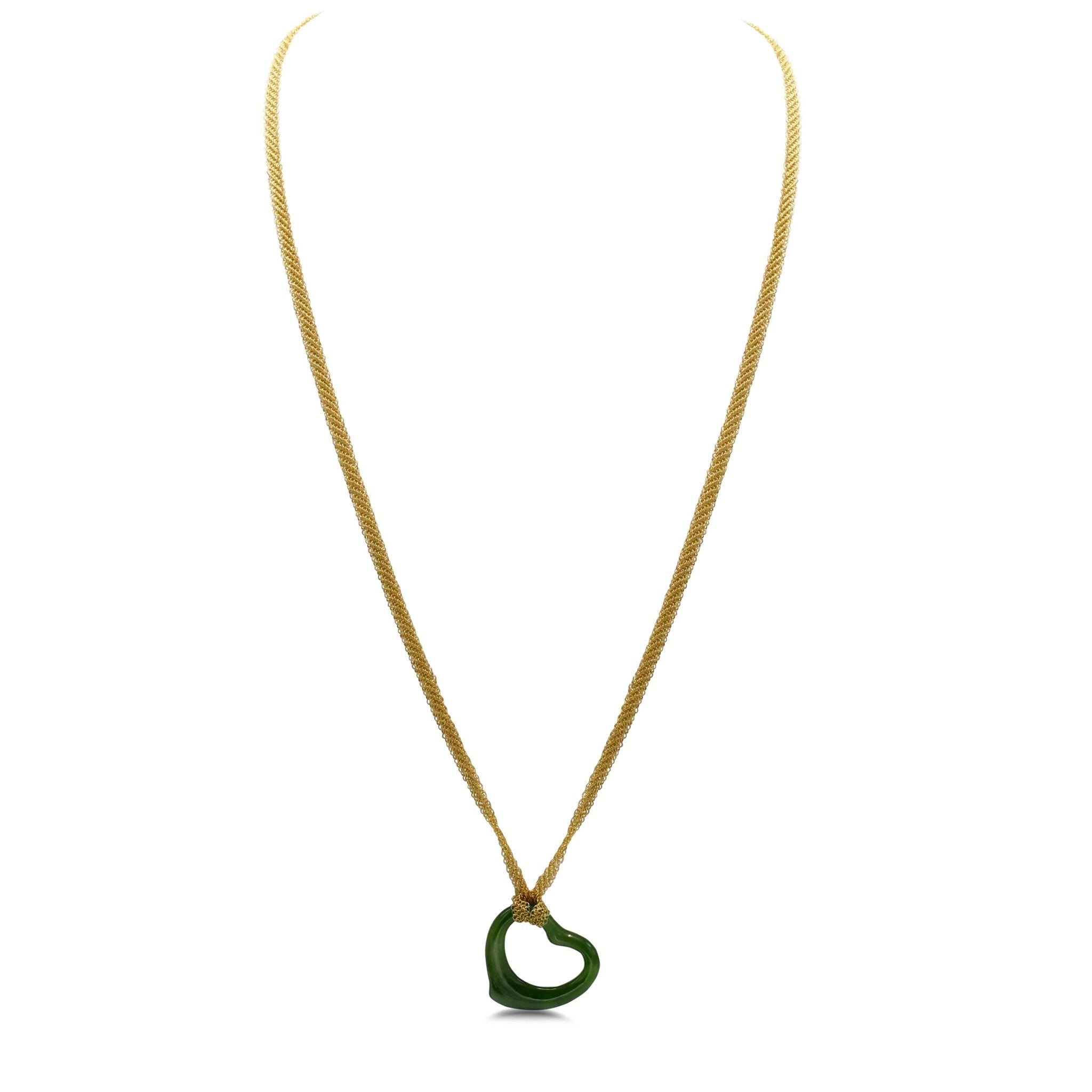 Invest in a timeless piece that will be treasured for years to come. Order your pre-loved Tiffany Elsa Peretti Jade Open Heart Pendant On Necklace now and elevate your style to the next level.