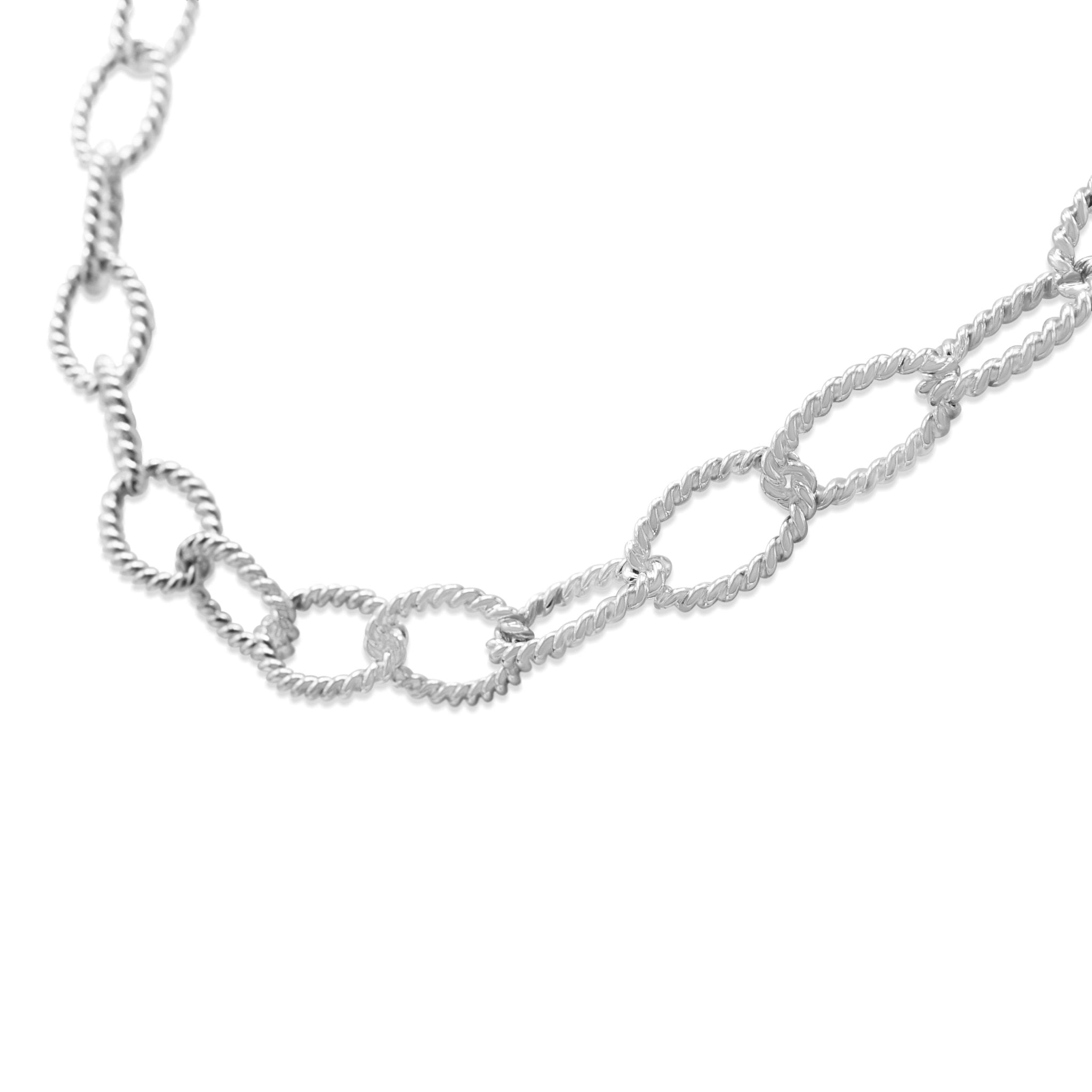 Crafted from high-quality Sterling Silver, this pre-owned necklace is designed to stand the test of time, both in its durability and in its stylish appeal. The oval twisted rope links add a unique and modern twist to a classic design, making it a one-of-a-kind statement piece.