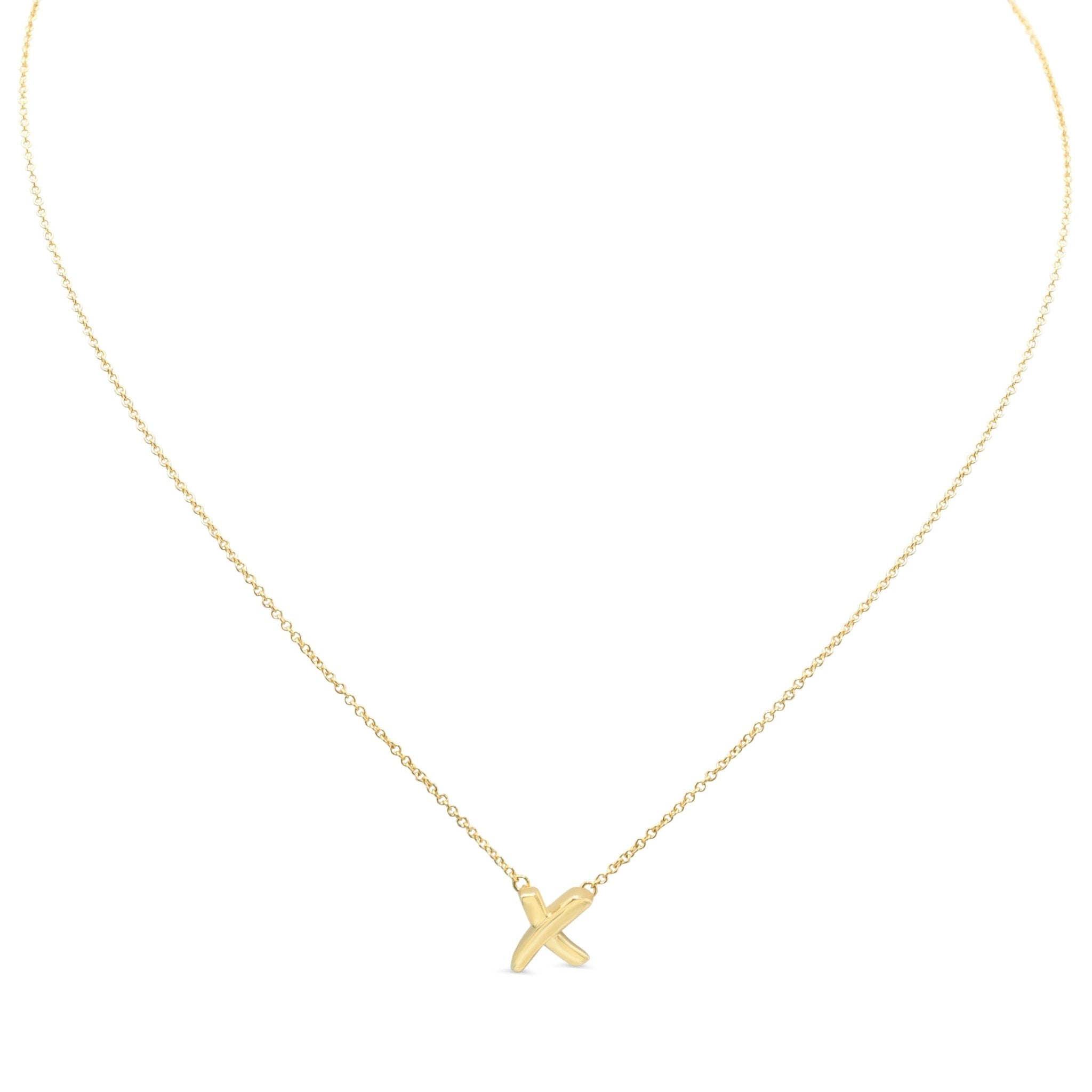 Looking for a bold piece of jewellery that is both elegant and edgy? Look no further than this second hand Tiffany Paloma's Graffiti X Pendant Necklace in 18ct Yellow Gold. This stunning necklace is a part of the iconic Paloma Picasso collection from the renowned brand Tiffany & Co. Embodying the creative spirit of Picasso herself, this necklace is a true work of art that will elevate any outfit.