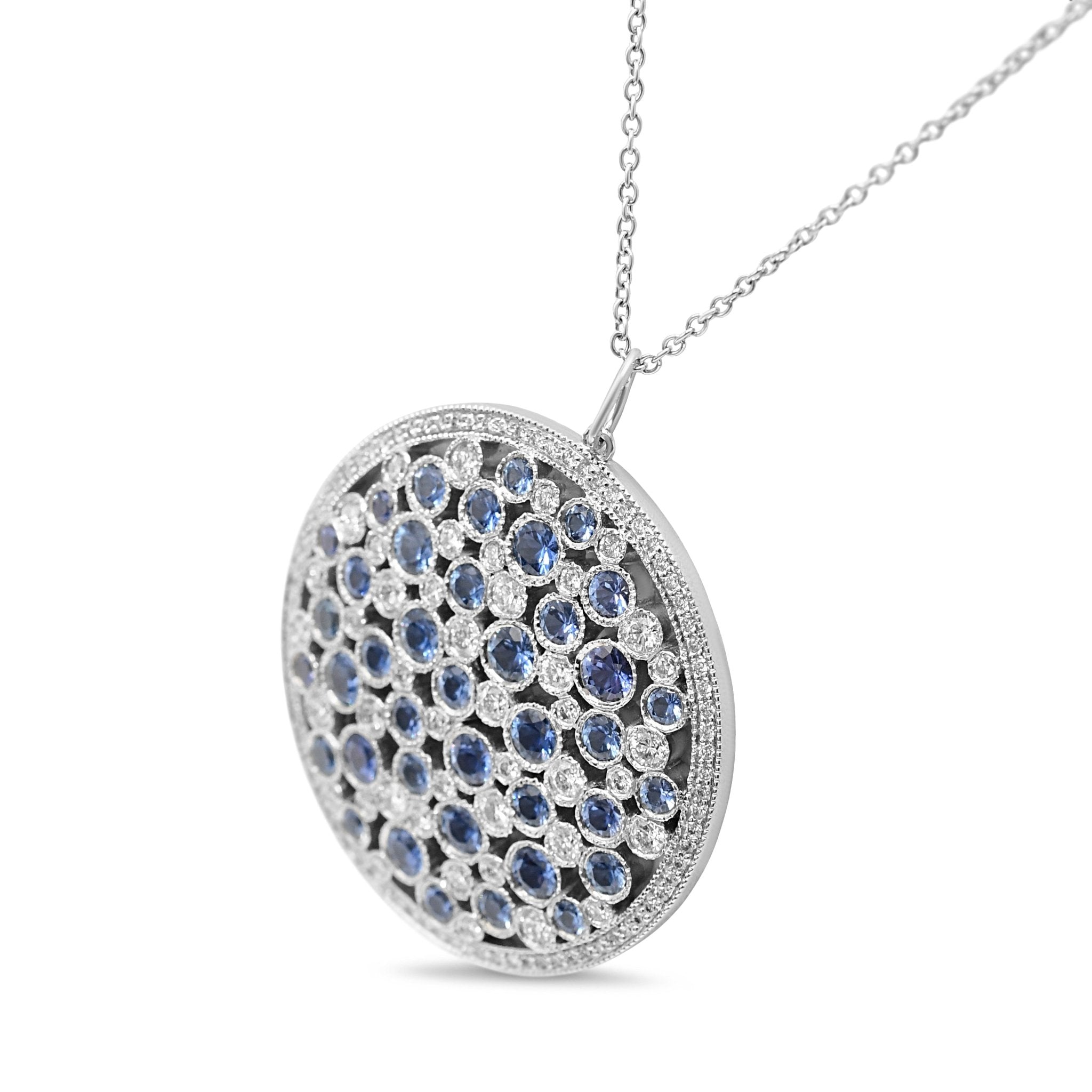 Crafted with the finest quality Platinum, this pre-owned necklace exudes a timeless charm and elegance. The necklace is designed with a gorgeous combination of Diamonds and Montana Sapphires, totalling a weight of 0.94ct and 2.50ct respectively. The sparkling Gemstones are expertly cut and set in a unique cobblestone pattern, giving this necklace a luxurious and sophisticated look.