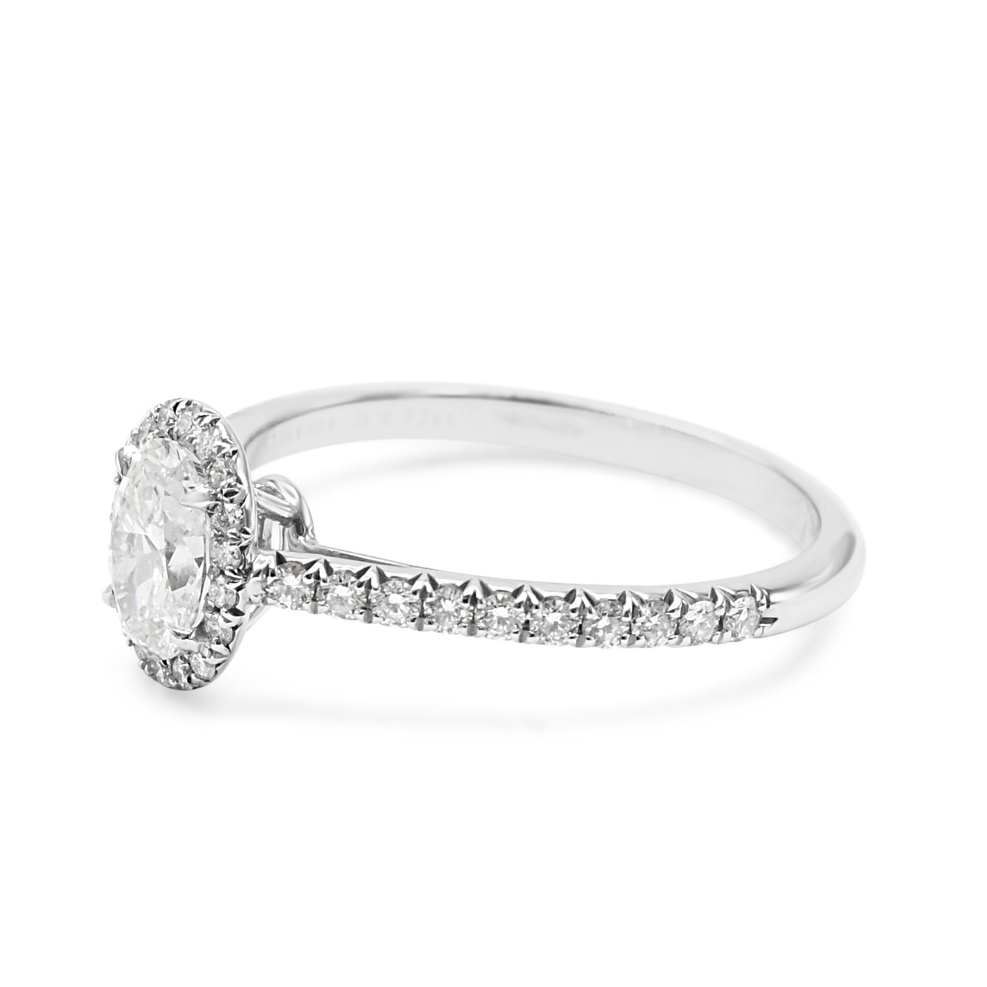 Introducing the ultimate expression of elegance and sophistication: this second hand Tiffany Soleste Certificated Oval Diamond Ring in Platinum. Crafted by the renowned luxury brand, Tiffany & Co, and from their exquisite Soleste collection, this used ring is the perfect symbol of love and commitment for the modern woman.