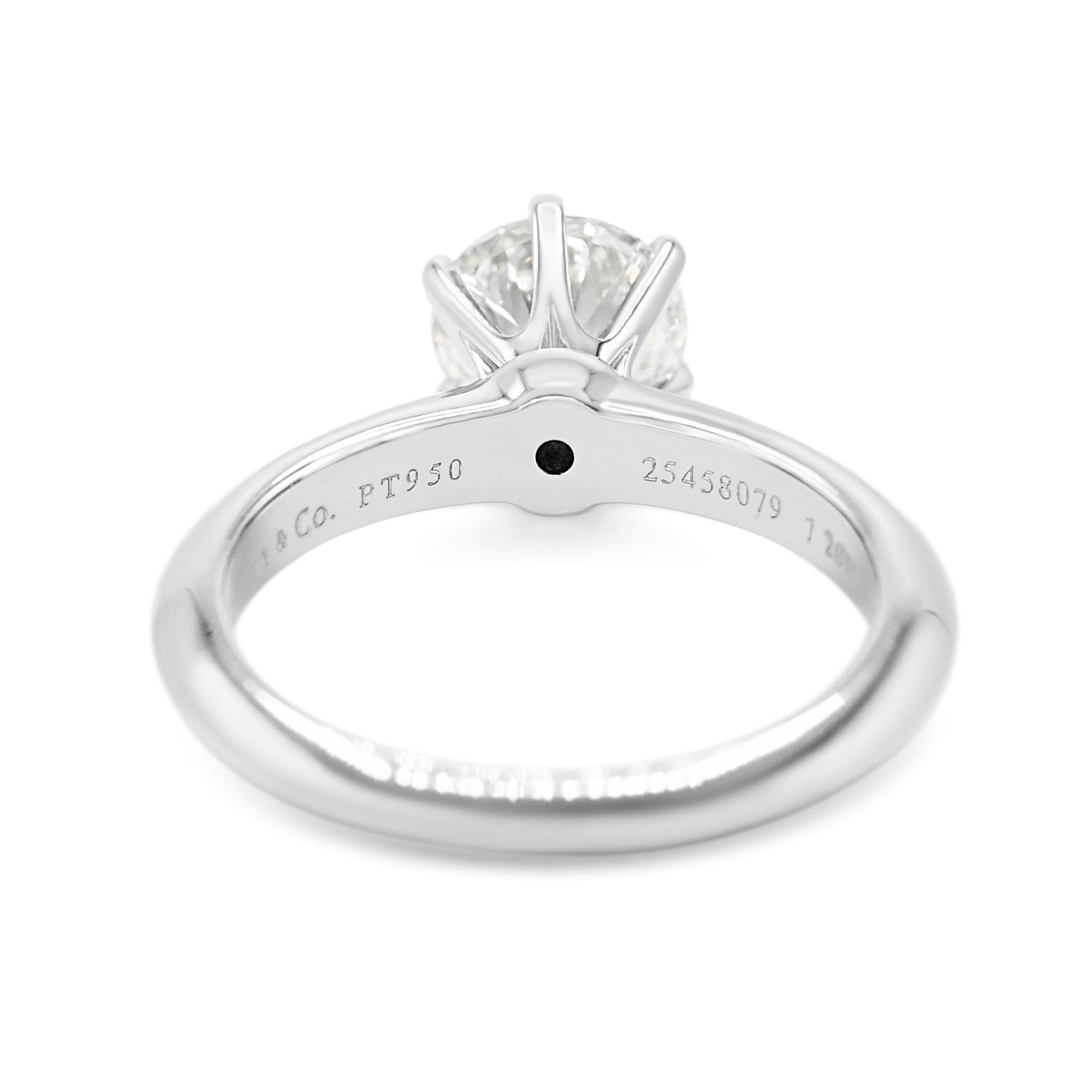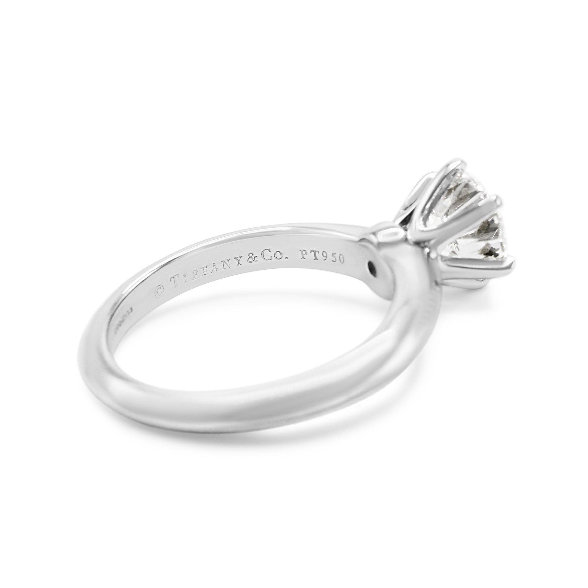 Introducing the epitome of timeless elegance and luxury - this second hand Tiffany Solitaire Brilliant Cut Diamond Ring. This stunning piece, crafted with the finest Platinum and adorned with a dazzling 1.20ct Diamond, is a true symbol of love and devotion.