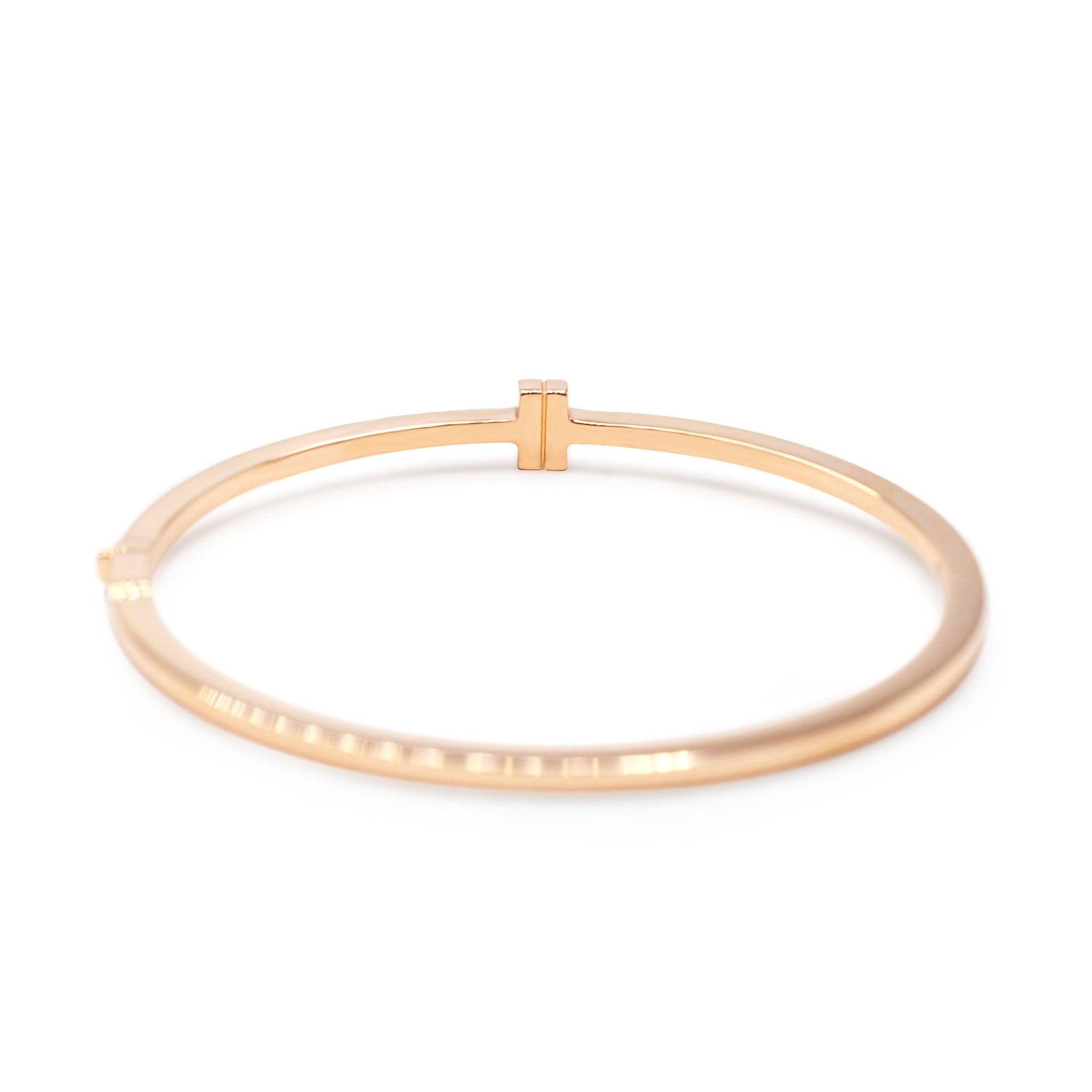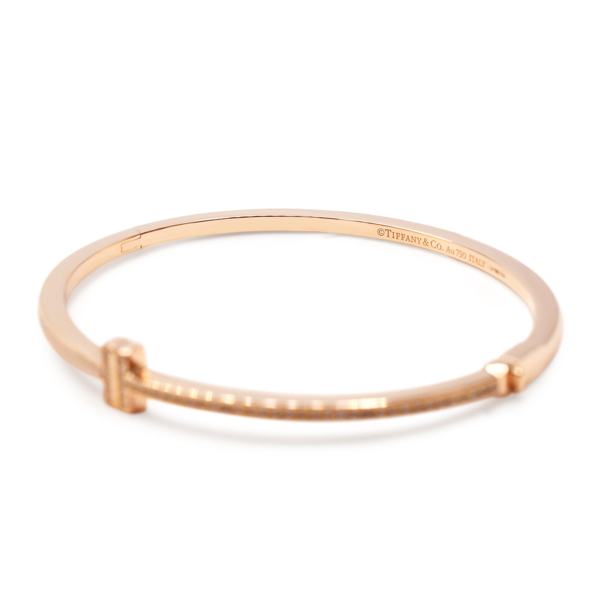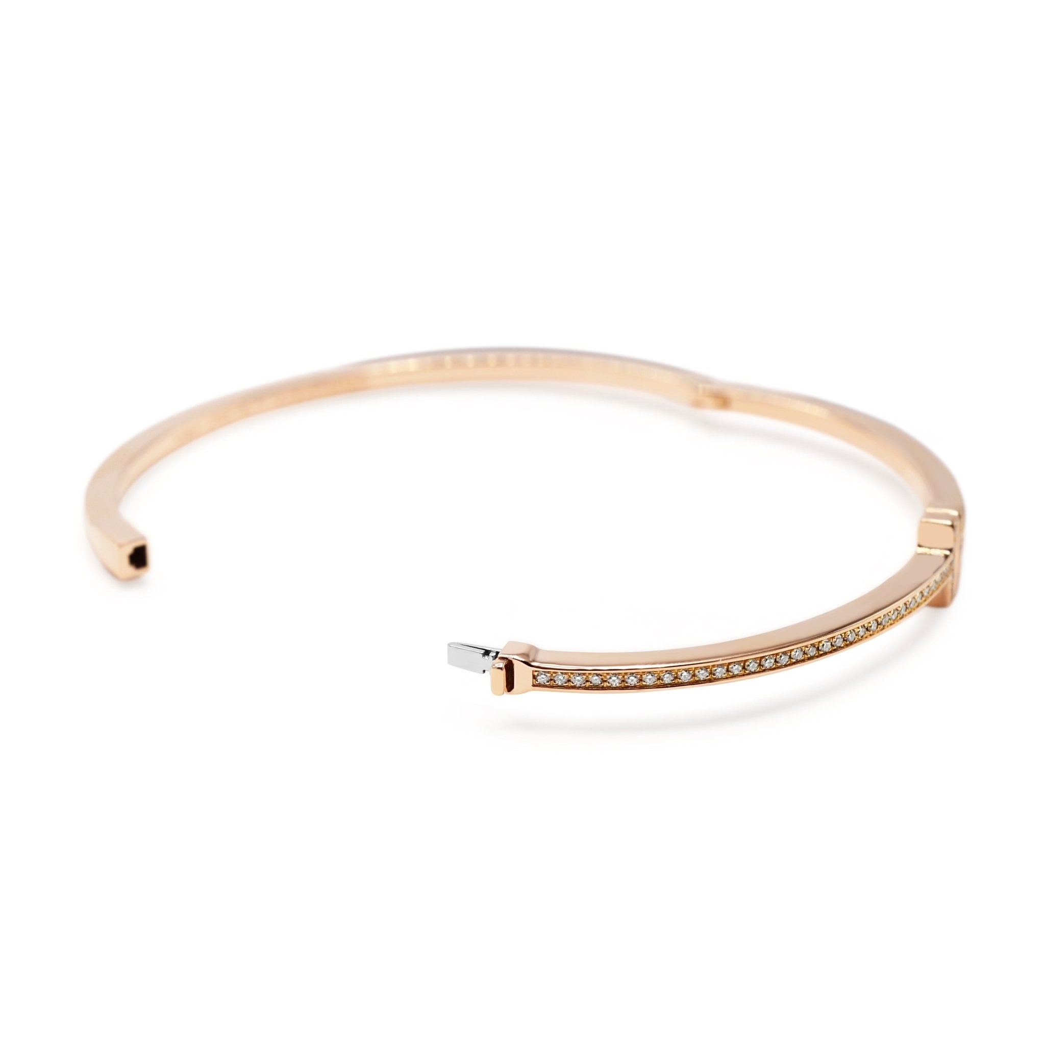 Introducing the ultimate statement piece in luxury jewellery - this second hand Tiffany T Diamond Hinged Wire Bangle. Crafted from exquisite 18ct Rose Gold, this bracelet is a symbol of timeless elegance and sophistication.