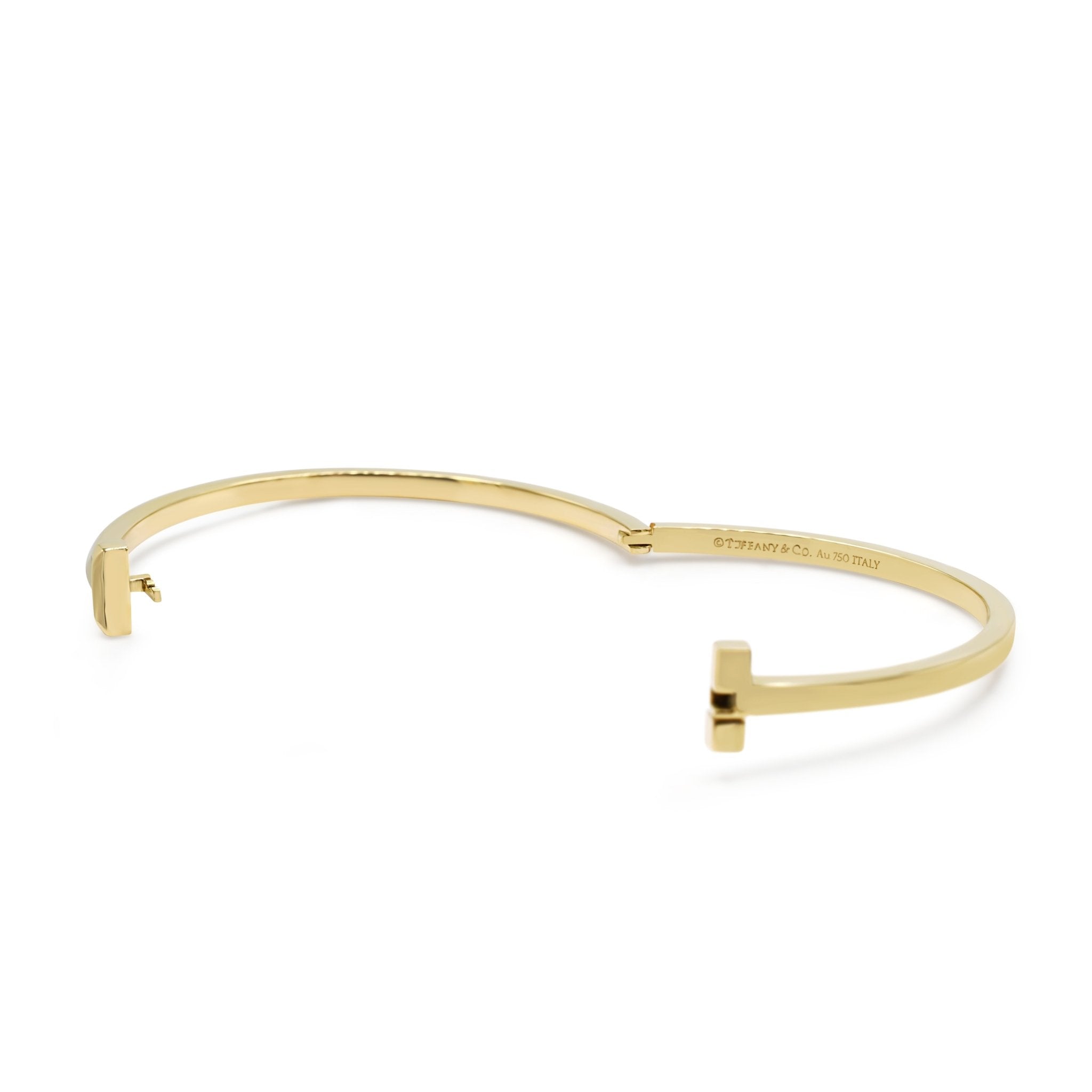 Ladies, get ready to elevate your style with the ultimate accessory from the iconic brand, Tiffany. Introducing the Tiffany T1 Narrow Hinged Bangle, a stunning piece that exudes elegance and sophistication. Crafted from the finest 18ct Yellow Gold, this used bangle is the epitome of luxury.