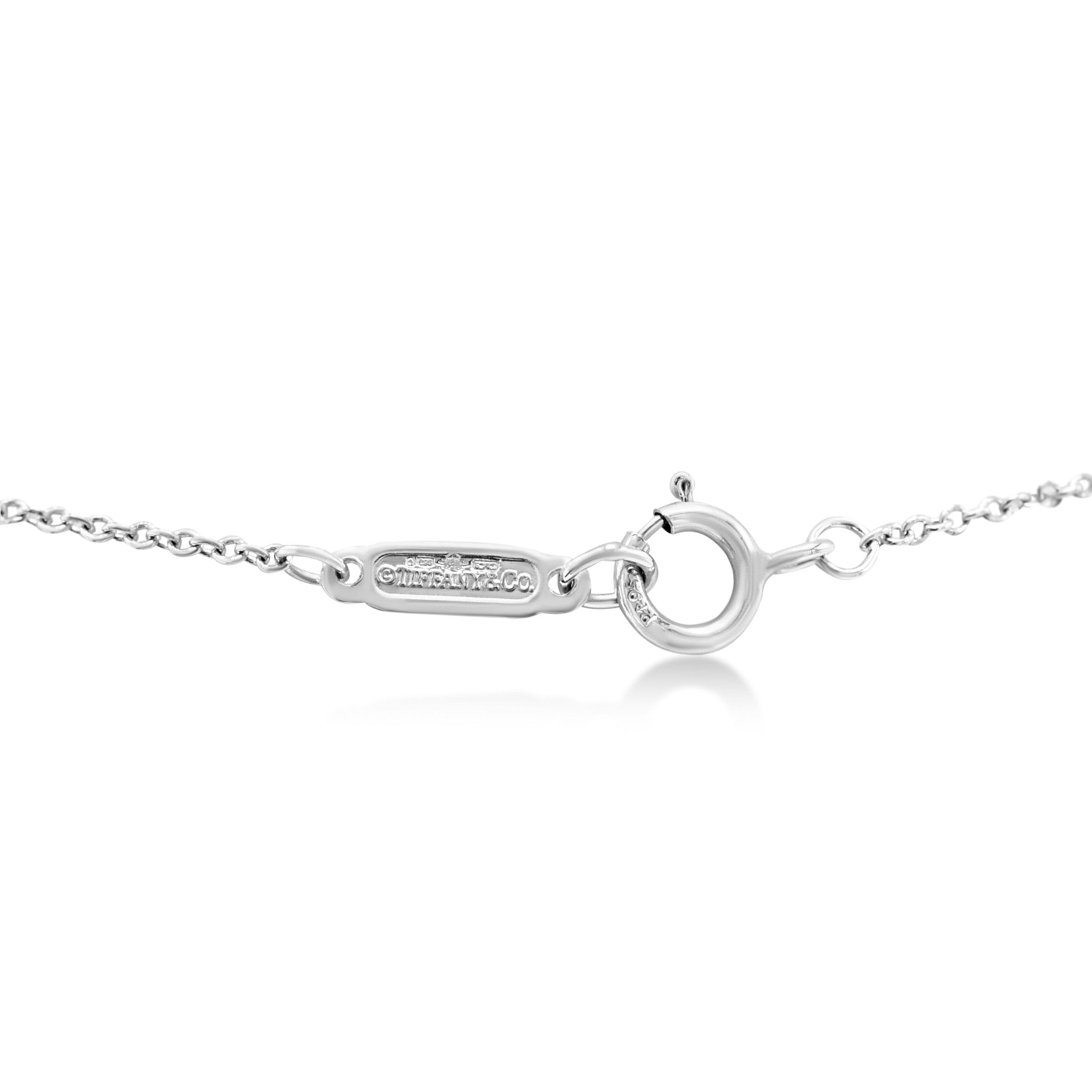 Tiffany & Co, the renowned jewellery brand, has carefully curated this piece from their exquisite Victoria collection, exclusively for women who appreciate the finer things in life. Made with the highest quality Platinum, this pre-owned necklace is a statement of timeless beauty and sophistication.