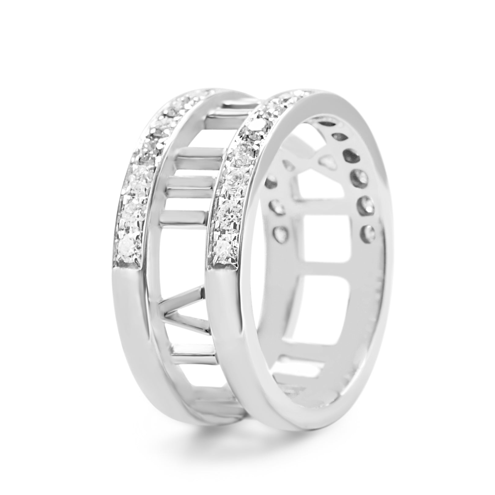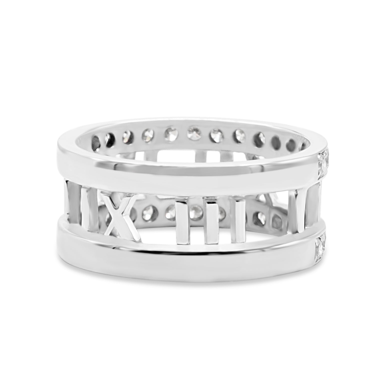 Introducing this stunning second hand Tiffany Atlas Diamond Set Band Ring in 18ct White Gold, a must-have accessory for any stylish woman. From the renowned brand Tiffany & Co, this ring is part of their elegant Atlas collection.