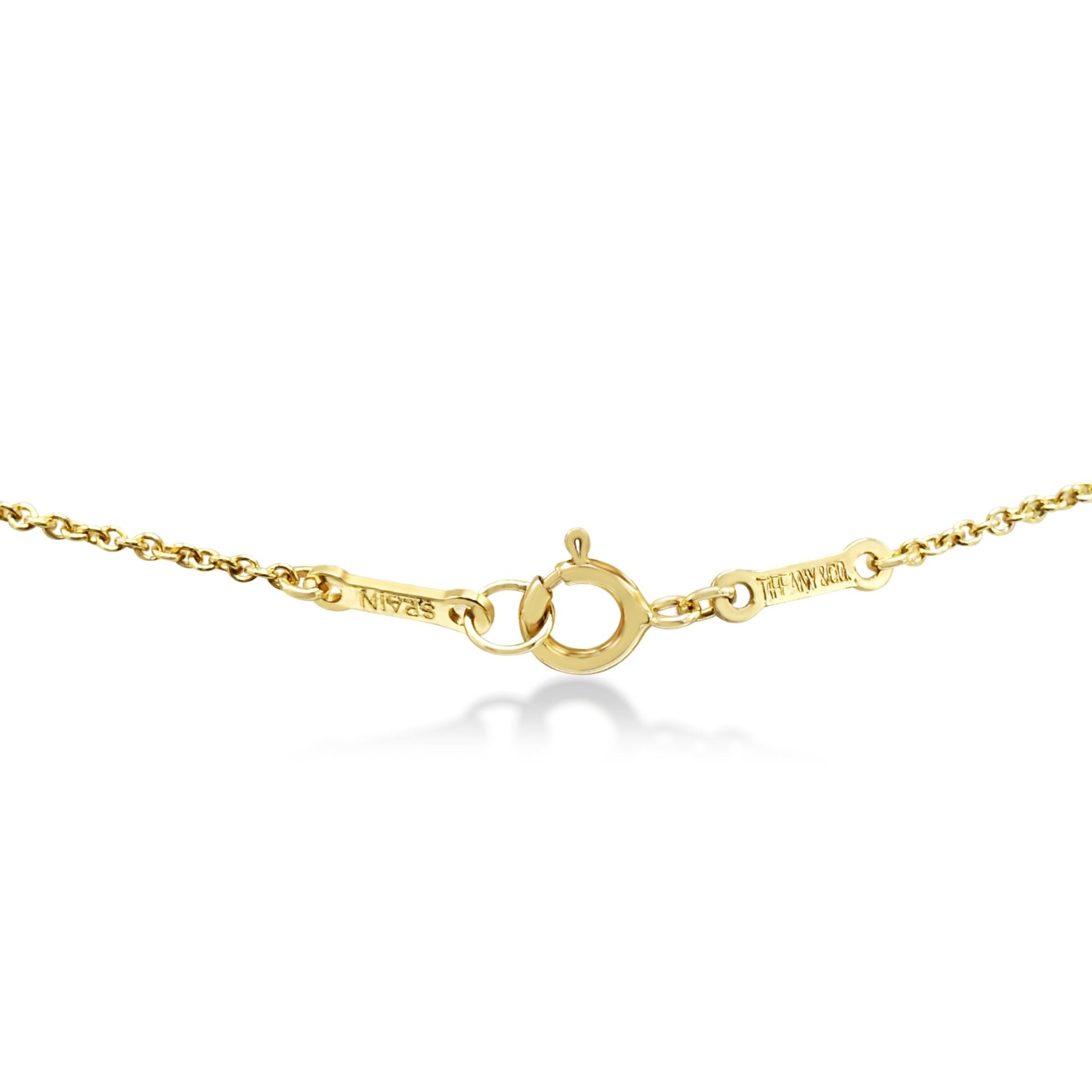 Introducing this Second Hand Tiffany Elsa Peretti Madonna Pendant On Necklace - an elegant and timeless piece that exudes femininity and grace. As part of the esteemed Elsa Peretti collection from Tiffany & Co, this necklace is a true statement of luxury and sophistication.
