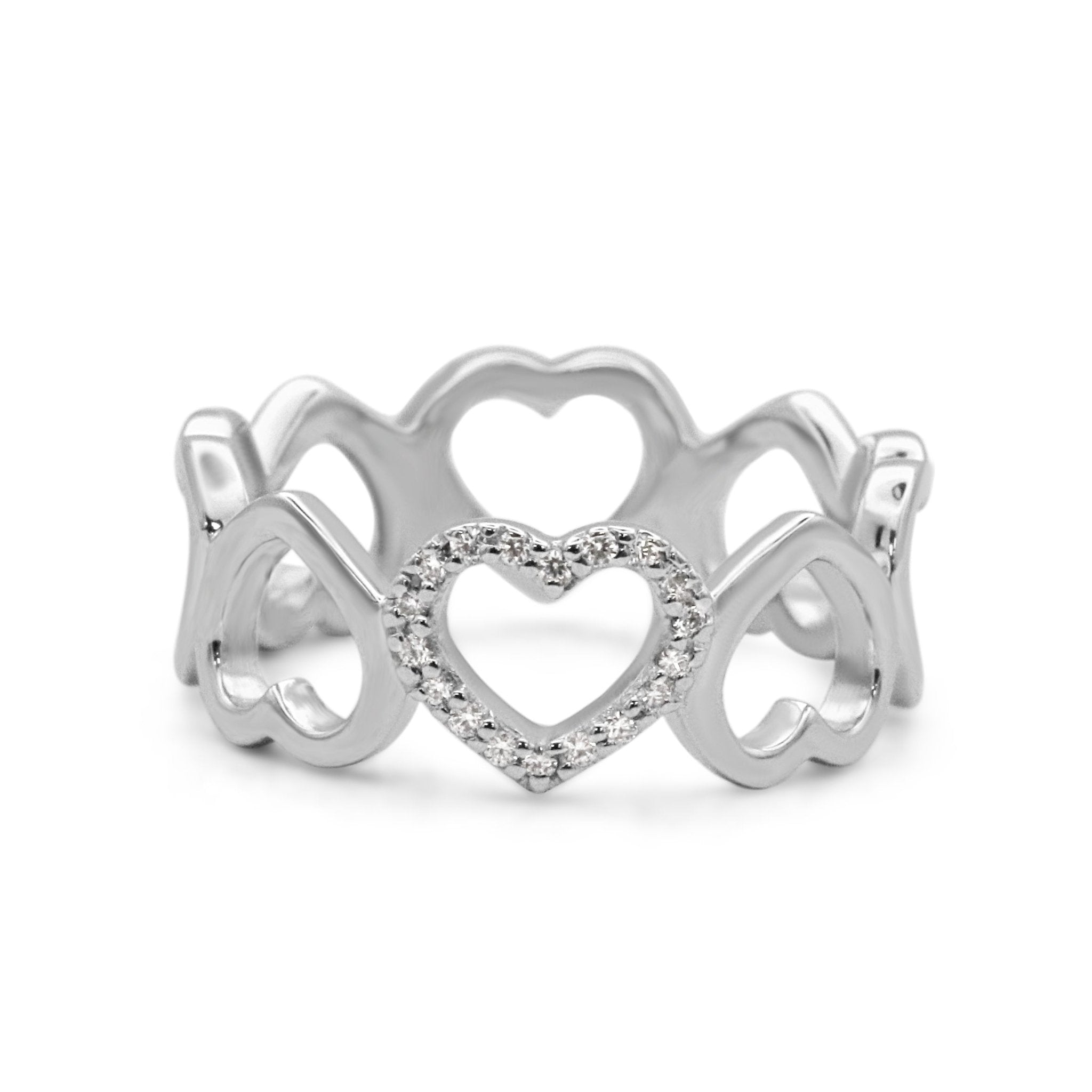 Show your love and affection with this second hand Tiffany & Co Diamond Open Loving Heart Ring. This stunning pre-owned ring exudes luxury and elegance, perfect for any stylish woman. Crafted from 18ct White Gold, the ring is in excellent condition and comes in its original Tiffany box.