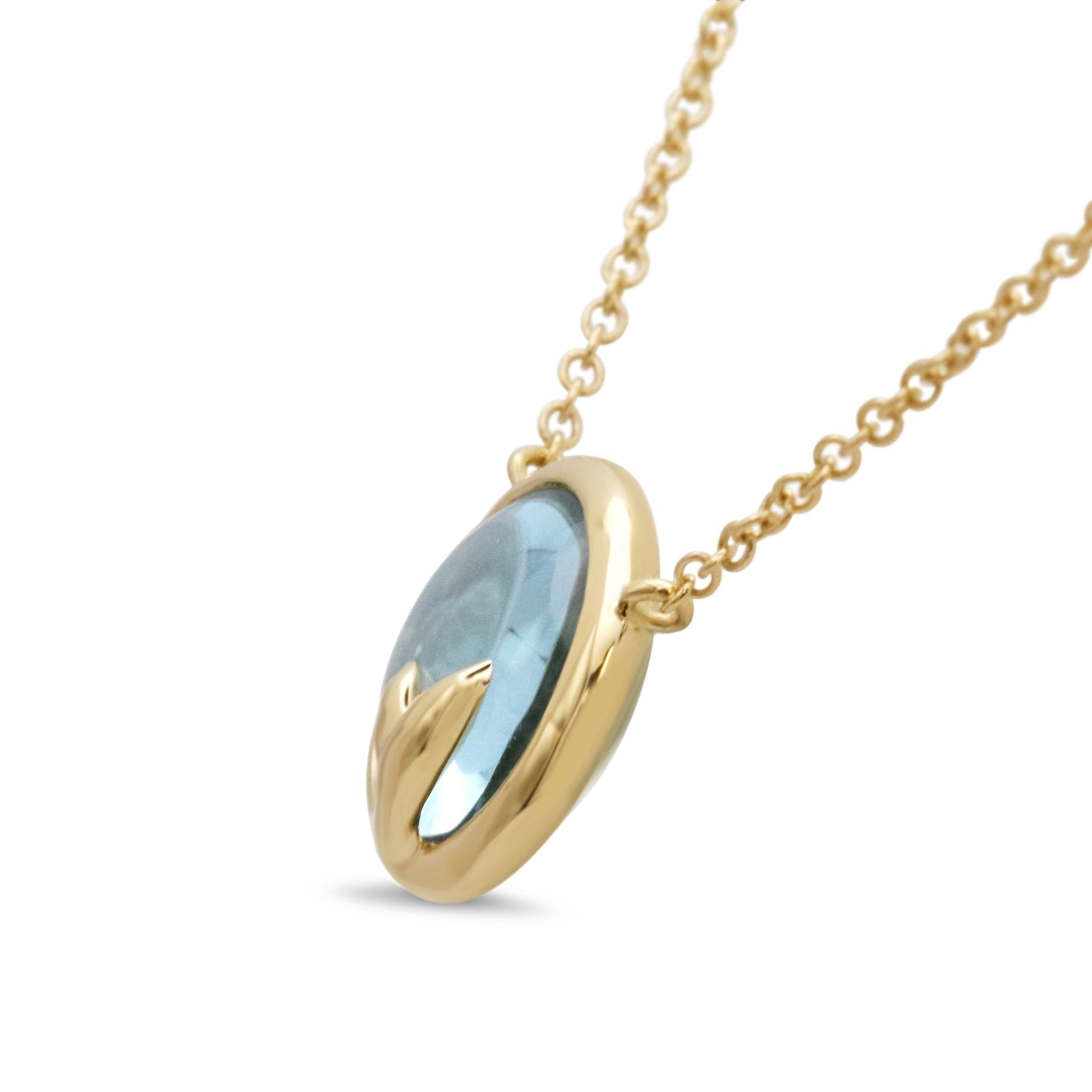 Indulge yourself in the luxury of the Tiffany & Co. brand. Embrace the enchanting allure of Blue Topaz and the graceful olive leaf design with this remarkable pendant necklace. Own a piece of history and let it become a part of your own unique story.