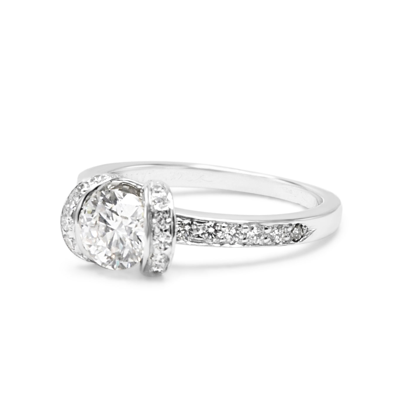 Don't miss this opportunity to start your happily ever after with this pre-loved Tiffany Ribbon Certificated Diamond Engagement Ring. Give her the gift of a lifetime and make your proposal a moment to remember with this impeccable and breath-taking piece.