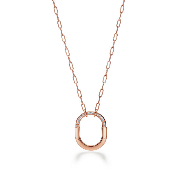 • Tiffany Lock Pendant in Rose Gold with Diamonds, Medium